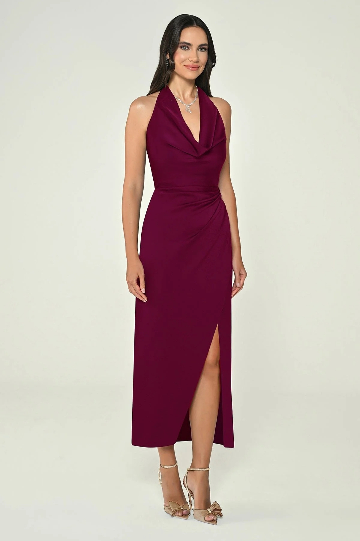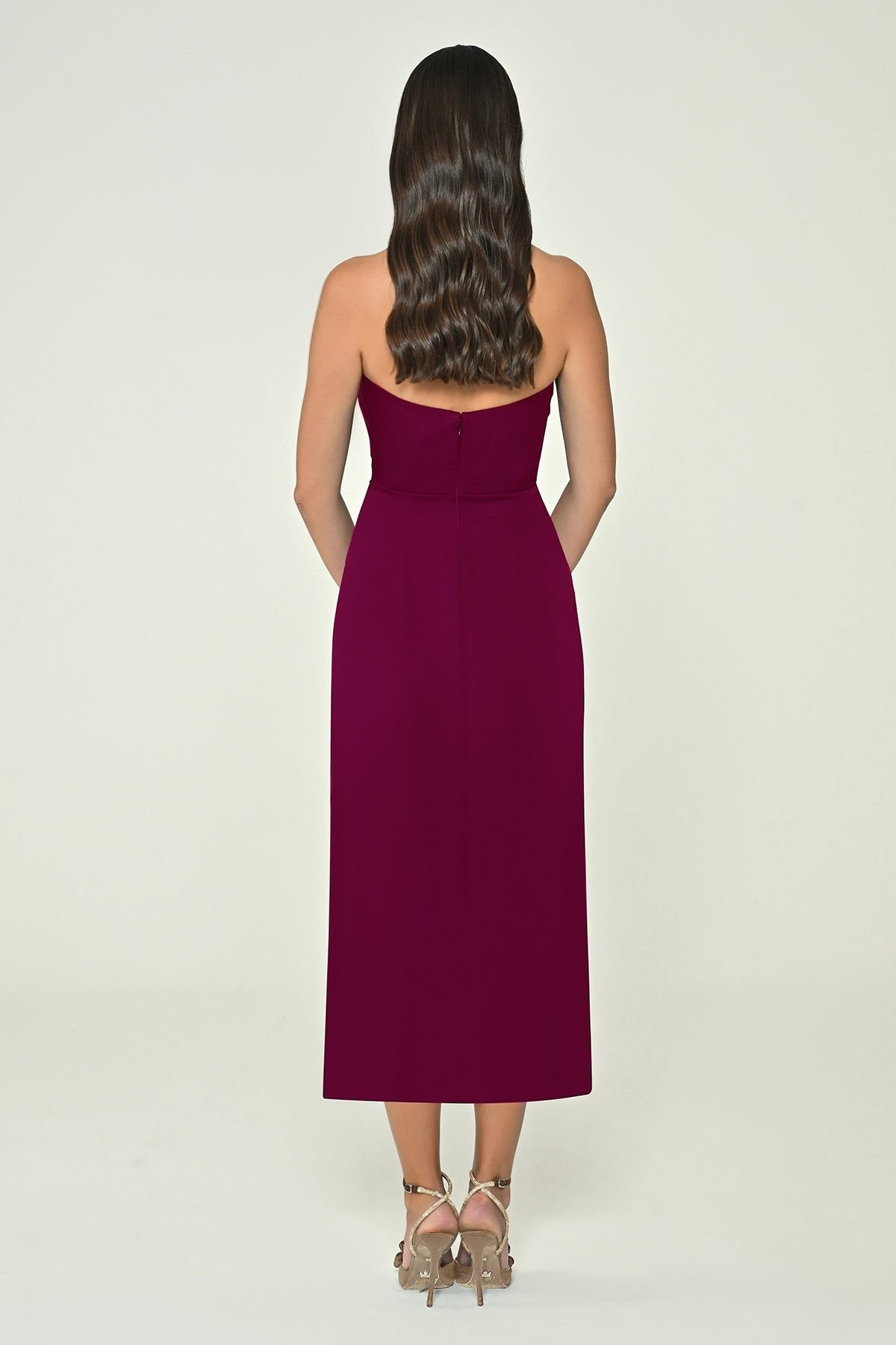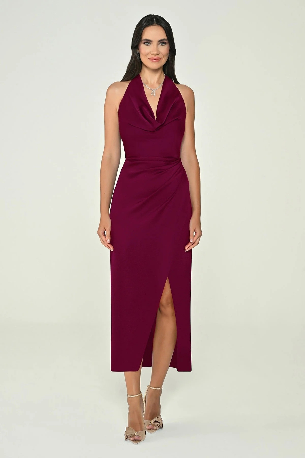 Bordo Boyundan Bağlı Degaje Yaka Anvelop Midi Abiye Elbise 72
