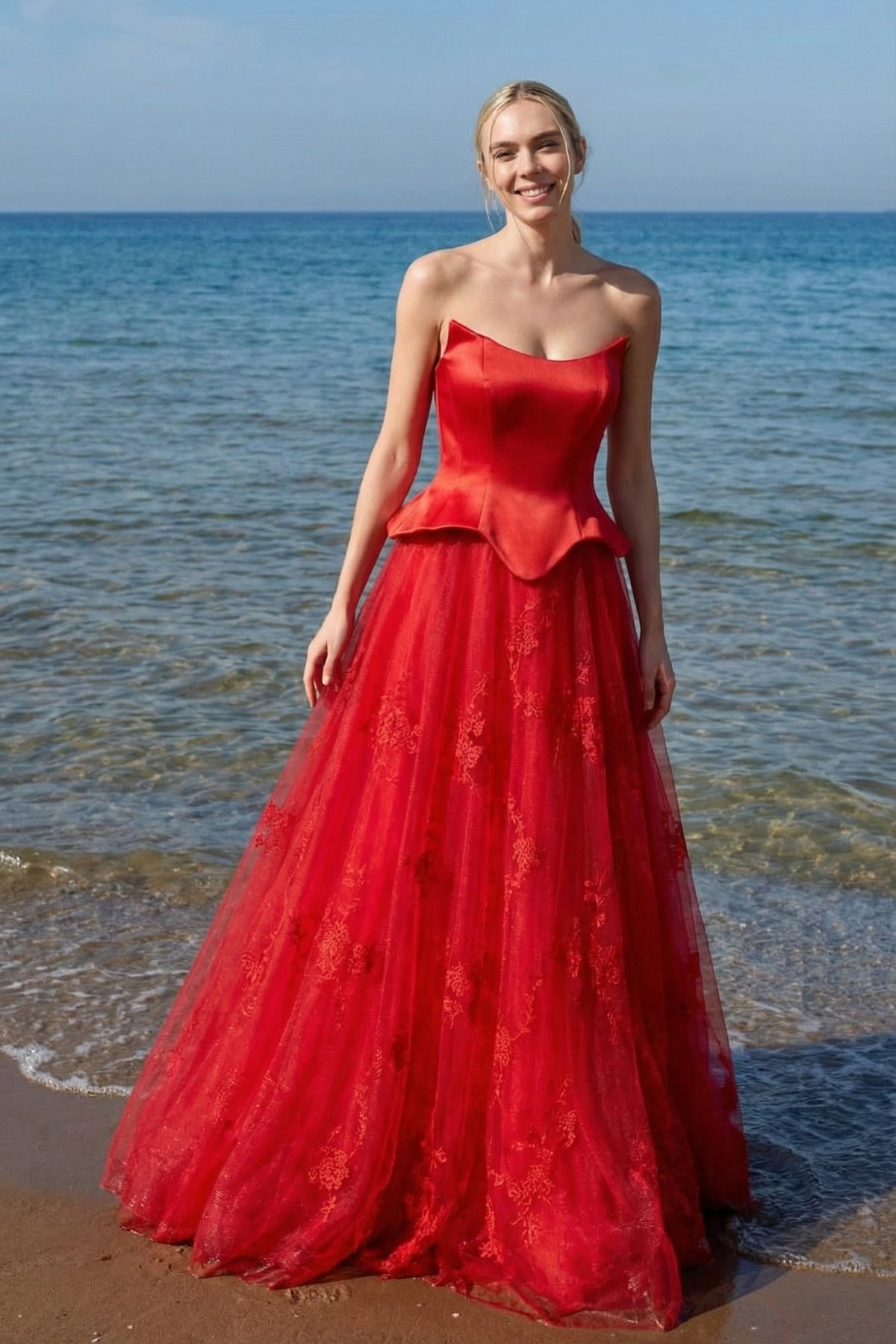 Kırmızı Kırmızı Gepiyerli Dantel Etek İthal Abiye Elbise 29
