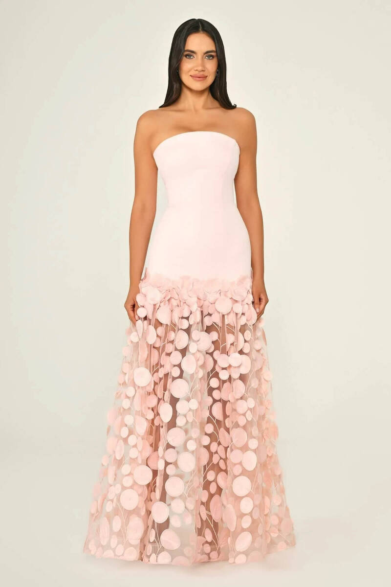 Pembe Straplez Üç Boyutlu Transparan Etek Balık Abiye Elbise 67