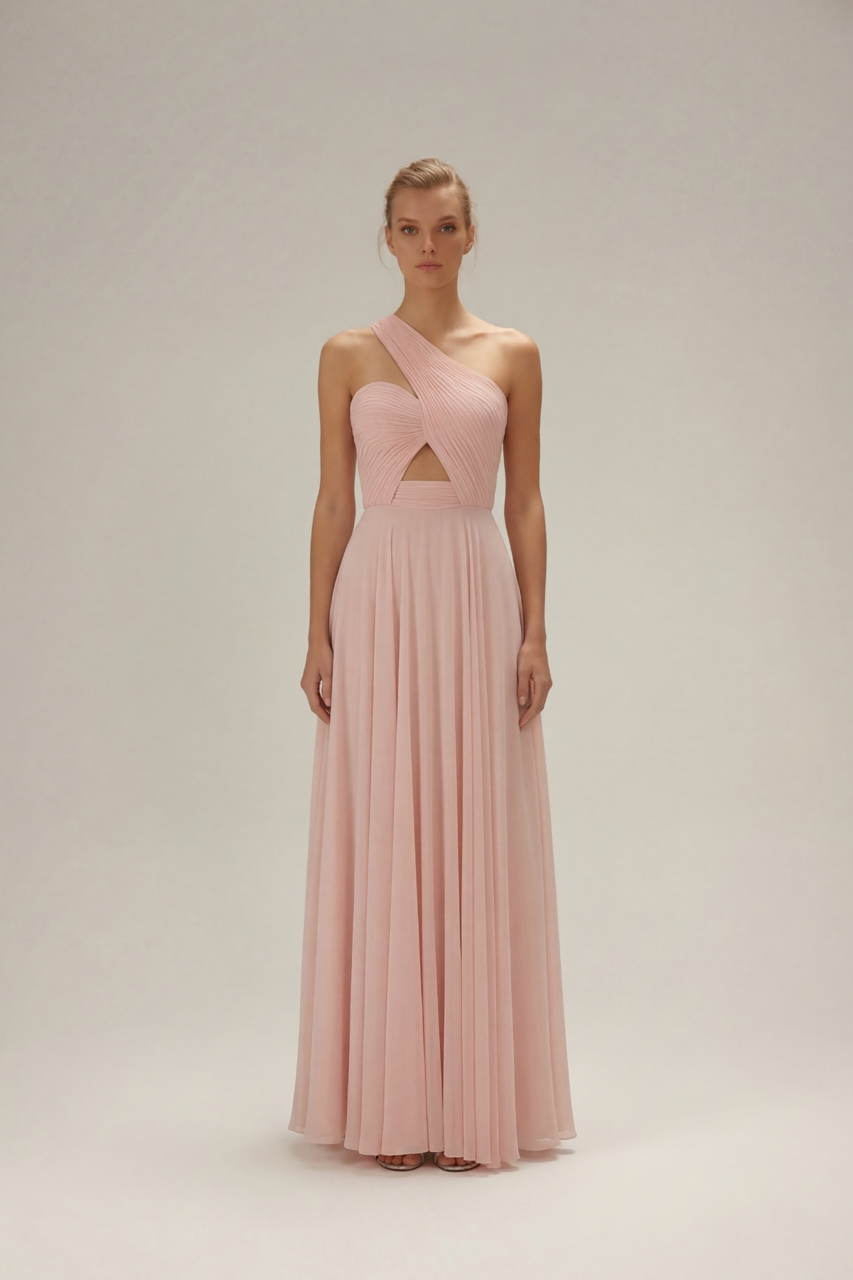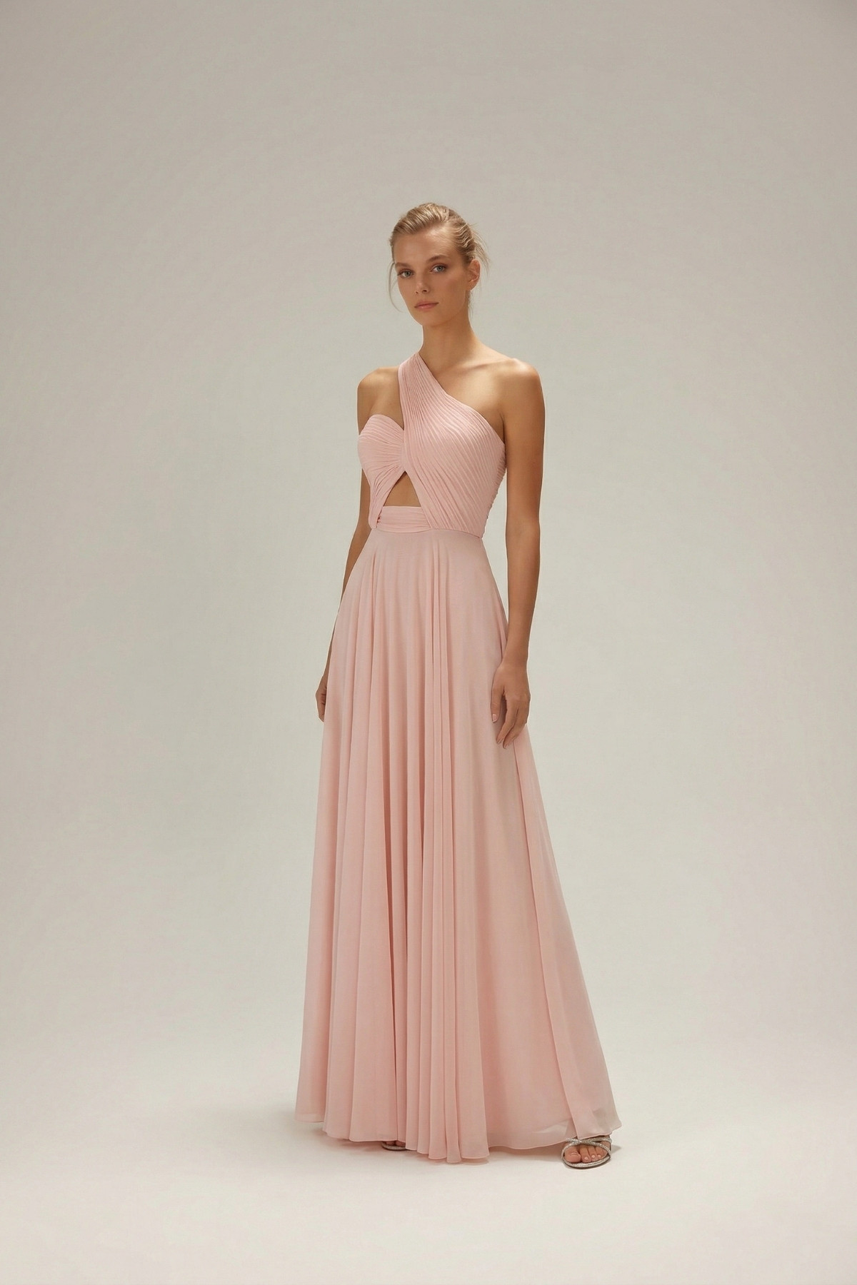 Pembe Tek Omuz Drapeli Yırtmaçlı Abiye Elbise 99