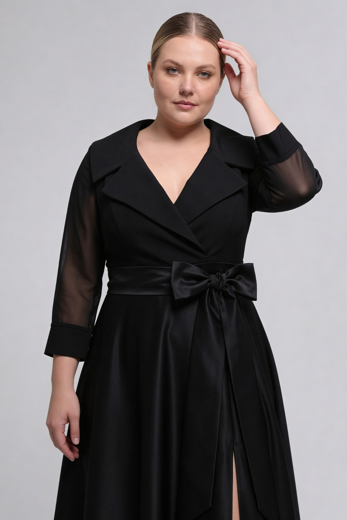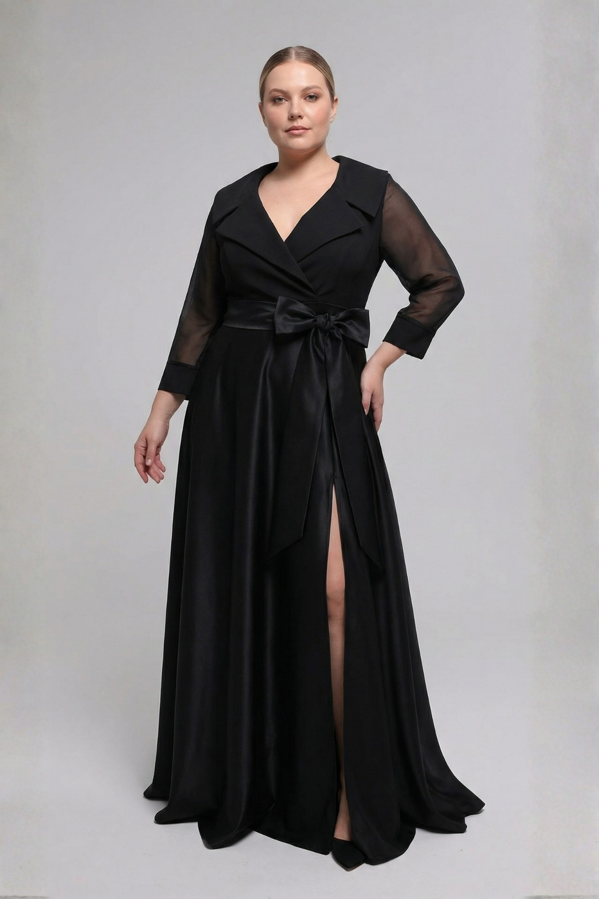 Siyah Truvakar Kol Yakalı Çift Renk Büyük Beden Abiye 60