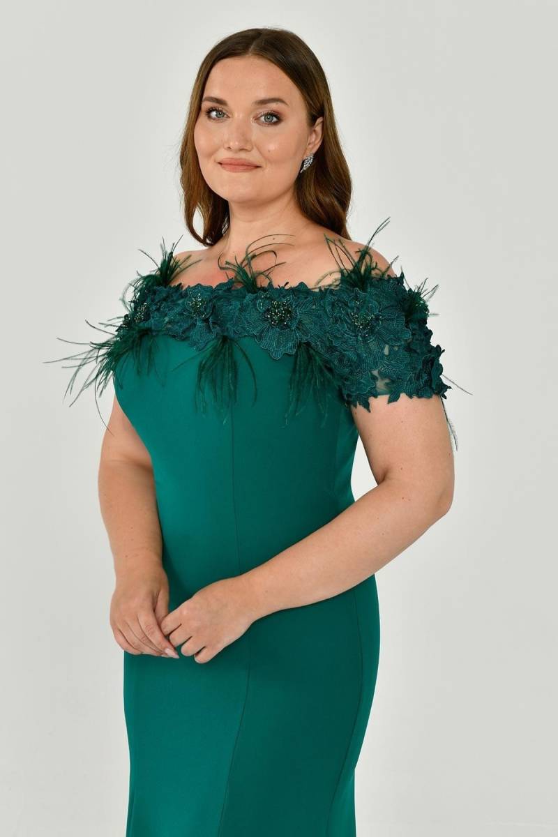 Zümrüt Kayık Yaka Güllü Krep Büyük Beden Abiye 59